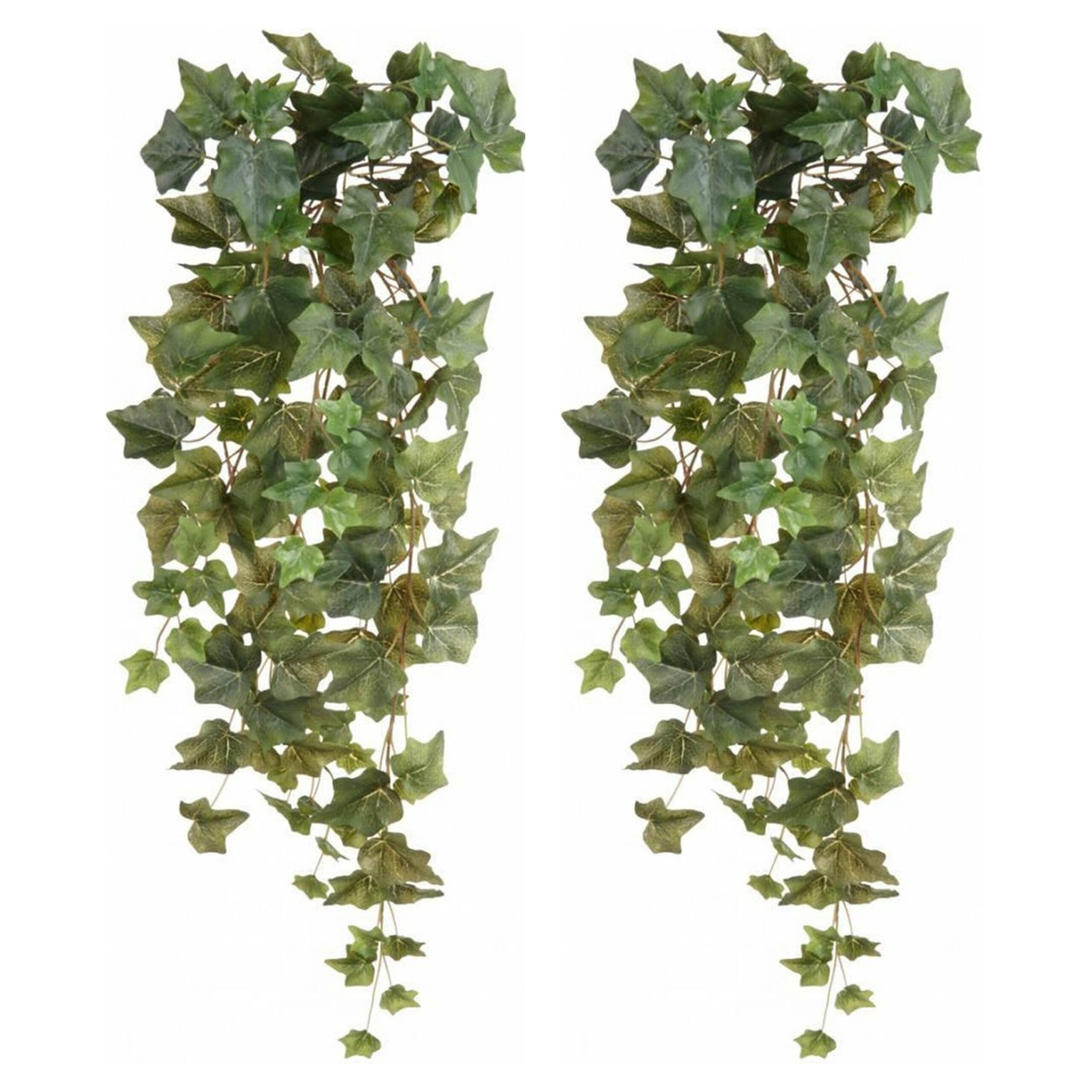 2x emerald kunstplant hangplant Klimop/hedera in de kleur groen. Afmeting: 70 cm. Deze mooie kwaliteit kunstplant is perfect om mee te decoreren in een hangende bloempot, of laat deze naar beneden hangen vanaf een hoge kast. Het voordeel van dit hangende kunstplantje, is dat deze geen water nodig heeft, en het hele jaar door prachtig groen blijft! Dus zeer geschikt voor iedereen die niet beschikt over een stel groene vingers. Goed toe te passen in donkere ruimtes waar weinig daglicht komt, zoals de badkamer of toilet.