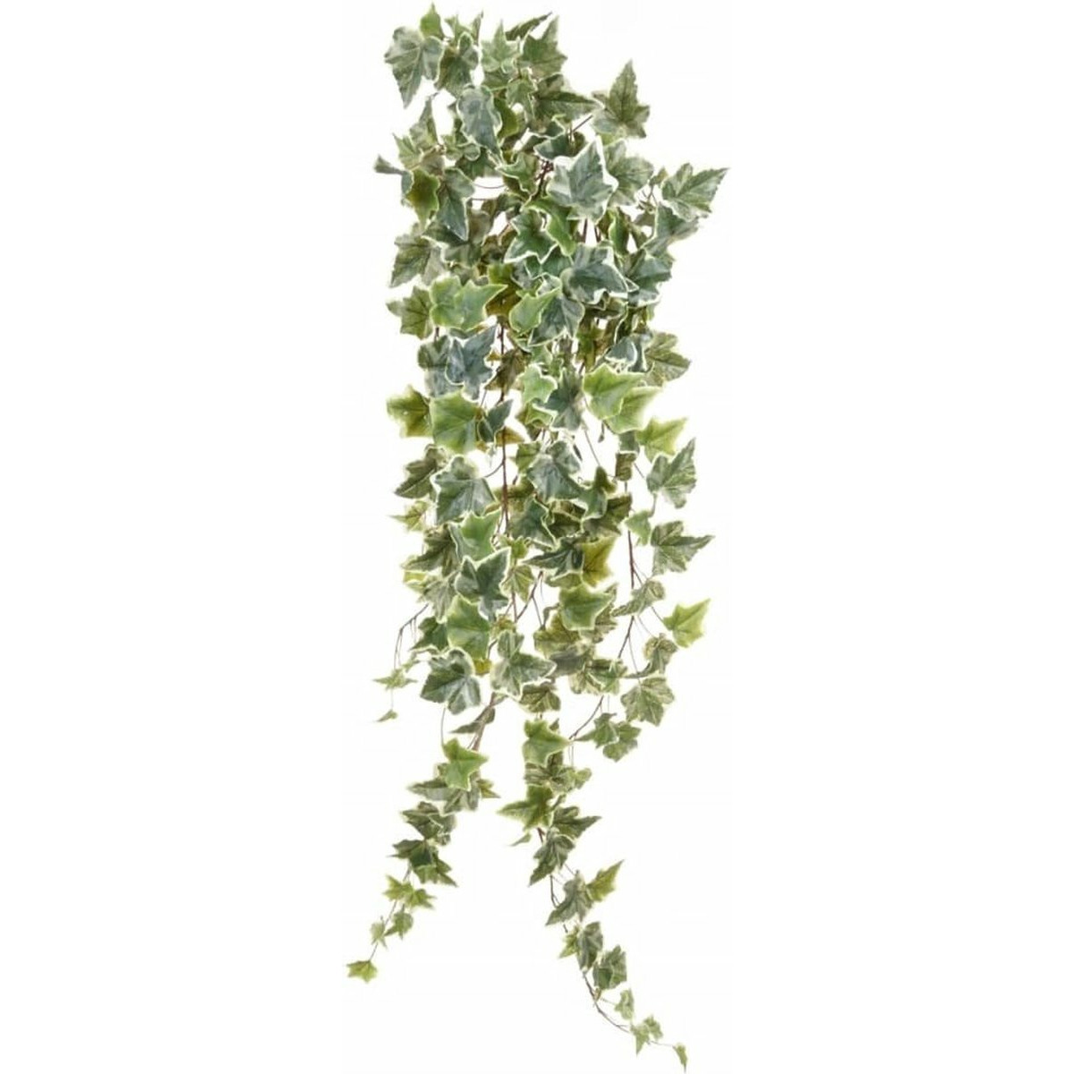 Emerald kunstplant hangplant Klimop/hedera in de kleur groen/wit. Afmeting: 100 cm. Deze mooie kwaliteit kunstplant is perfect om mee te decoreren in een hangende bloempot, of laat deze naar beneden hangen vanaf een hoge kast. Het voordeel van dit hangende kunstplantje, is dat deze geen water nodig heeft, en het hele jaar door prachtig groen blijft! Dus zeer geschikt voor iedereen die niet beschikt over een stel groene vingers. Goed toe te passen in donkere ruimtes waar weinig daglicht komt, zoals de badkamer of toilet.