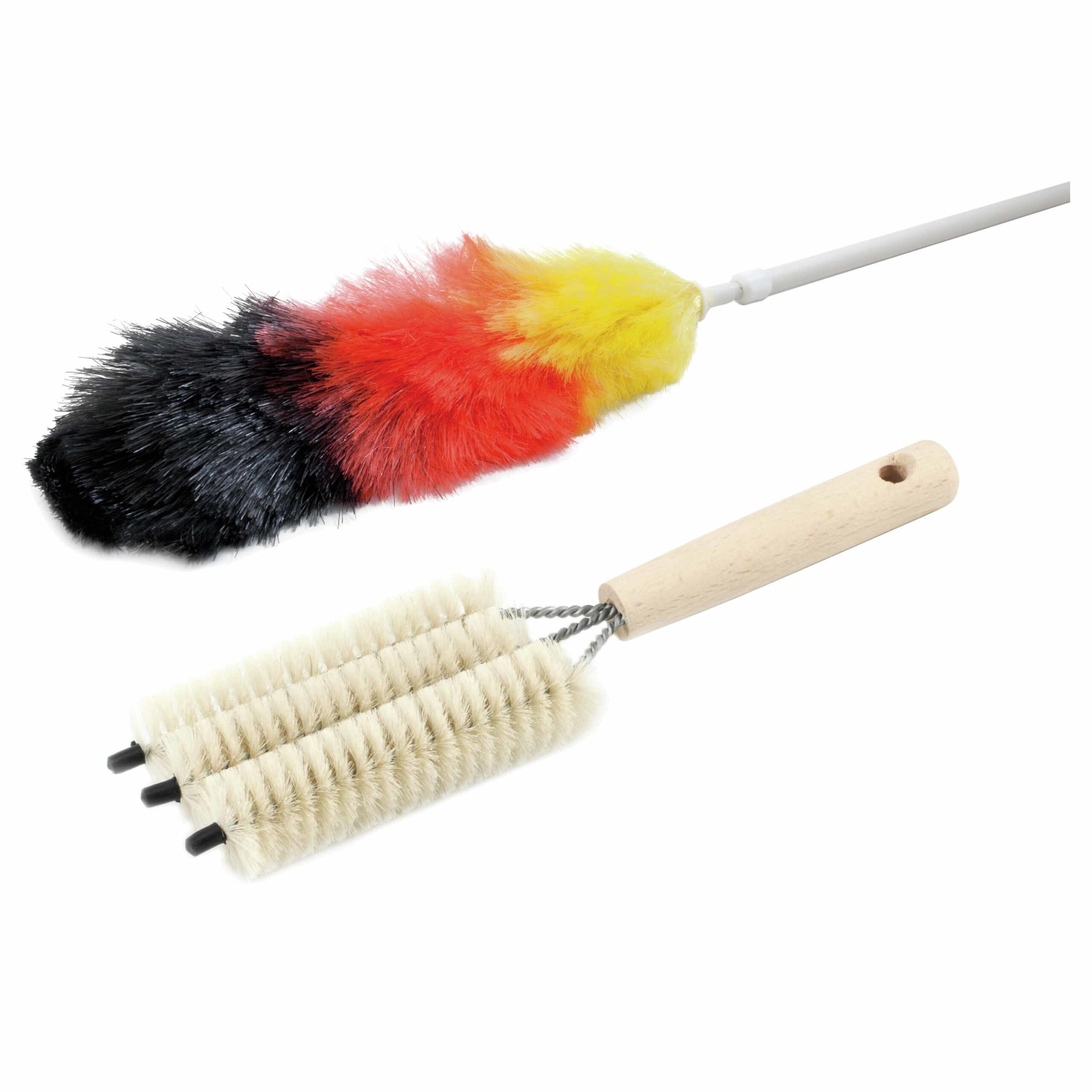 , Dit artikel bestaat uit:, 1x Plumeau synthetisch met telescopische steel 82 cm, 1x Jaloeziereiniger/jaloezieborstel 3- dubbele vorkvorm 23 cm