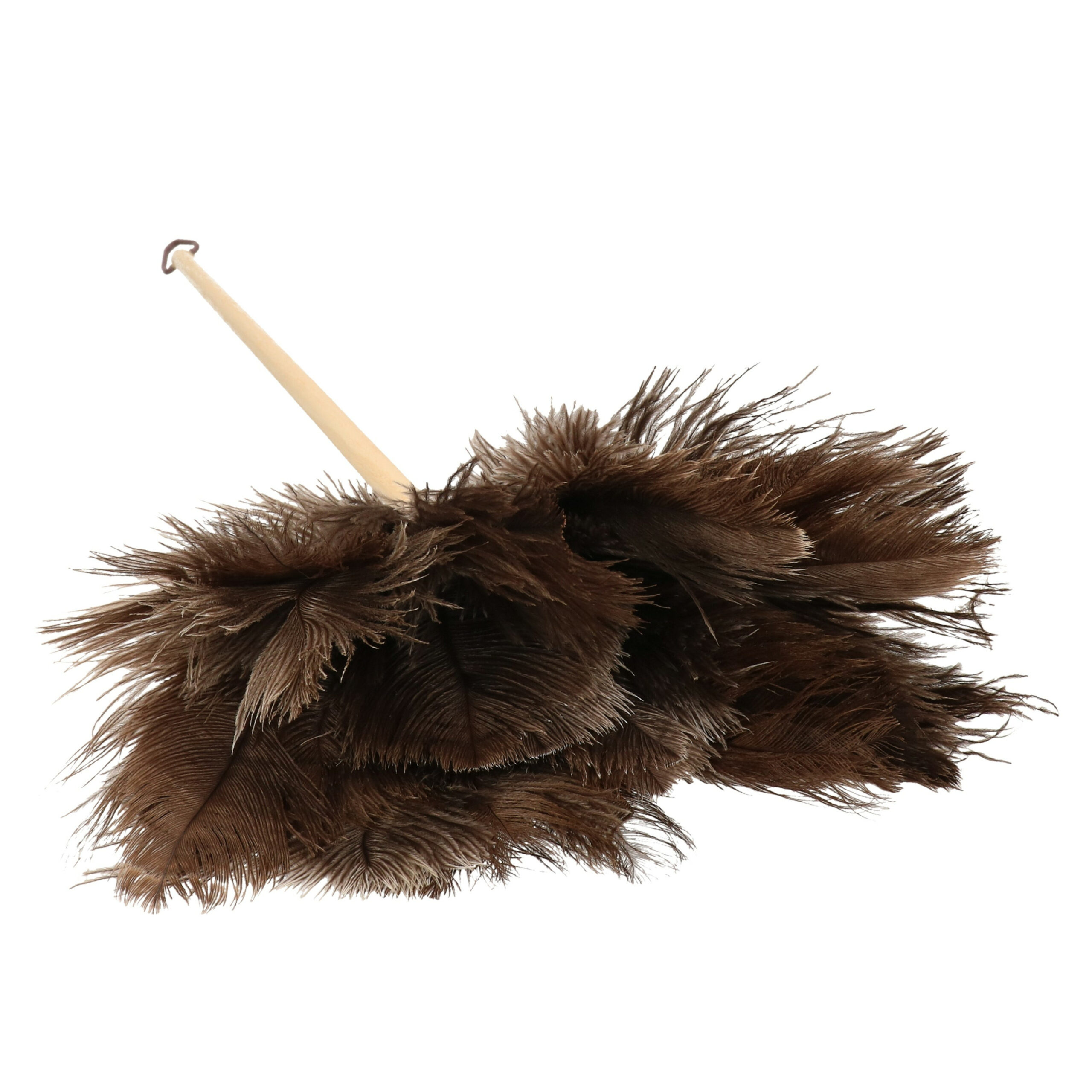 Plumeau/duster met struisvogelveren en houten handvat. Goed voor gevoelige zaken : struisvogel plumeaus zijn bijzonder licht , dat is waarom ze zijn bijzonder goed geschikt voor het afstoffen delicate items of kleinere stukken. Met deze plumeau houdt u gemakkelijk huis of kantoor vrij van stof. De duster kan met de hand worden uitgewassen. Lengte: 66 cm. Materiaal: hout, veren.