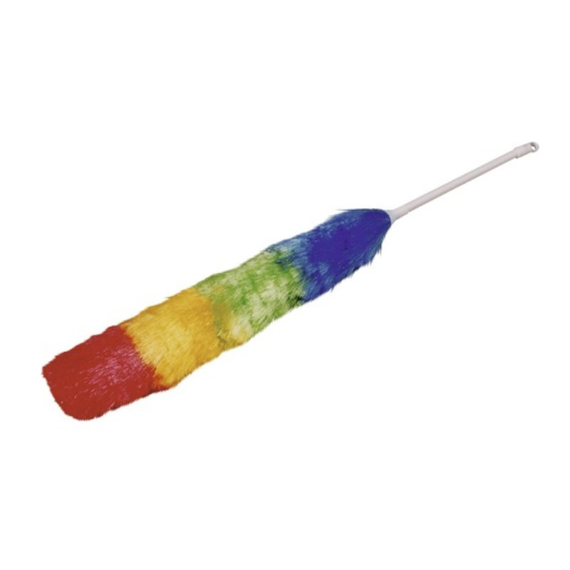 Multi kleuren plumeau/duster. Afmeting ca: 70 cm. Materiaal: kunststof/synthetisch. Met deze duster houd u gemakkelijk huis of kantoor vrij van stof.