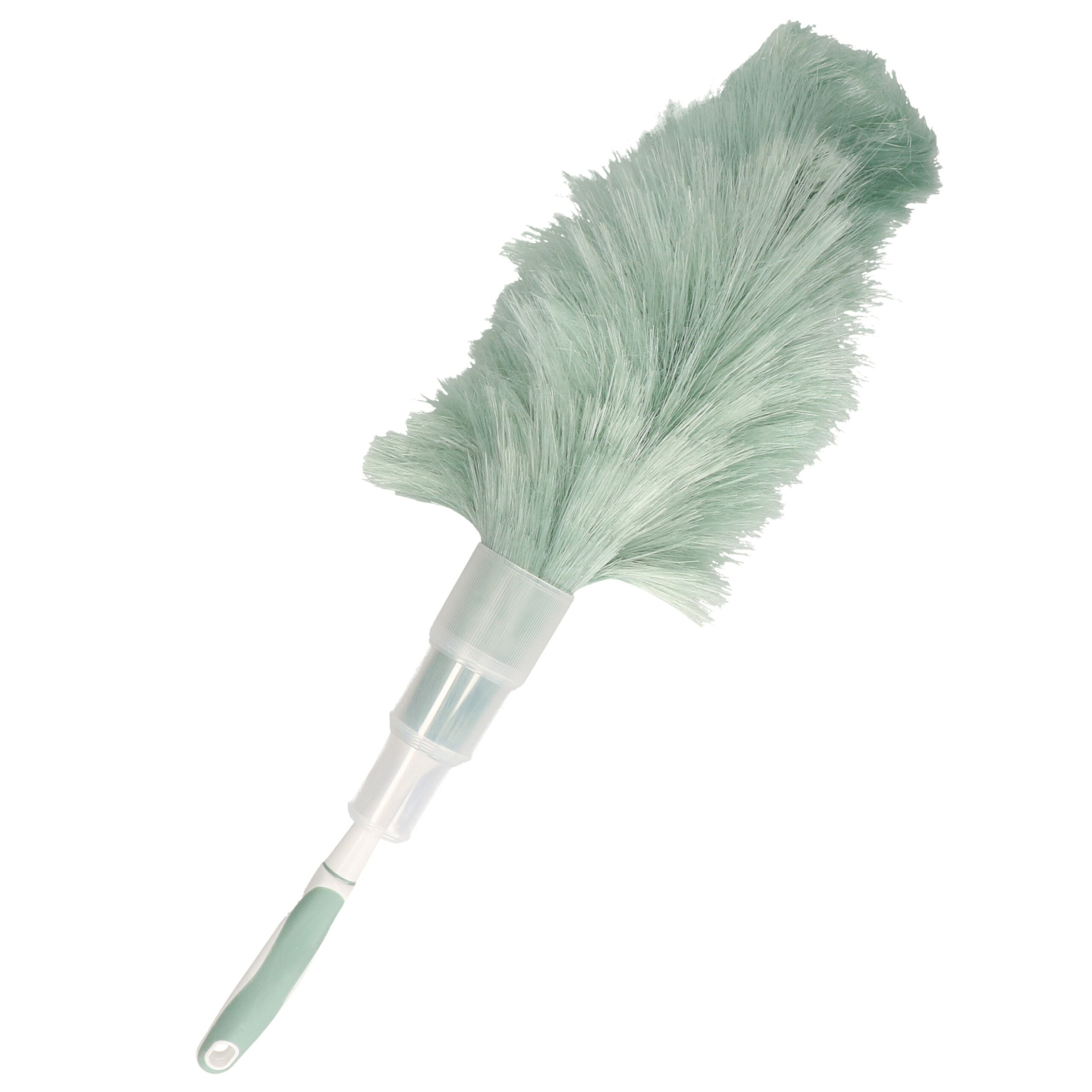Plumeau/duster – synthetisch – groen/grijs – 55 cm. Materiaal: kunststof/synthetisch.? Afmeting ca: 55 cm.? Met deze duster houdt u gemakkelijk huis of kantoor vrij van stof. De duster kan met de hand worden uitgewassen. Stoffer/ragebol voor het verwijderen van stof en spinnenwebben.