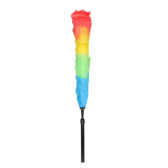 Plumeau/stofborstel gekleurd met telescoop steel 80-110 cm. Met deze uitschuifbare duster/plumeau met statische kunstvezels houdt u gemakkelijk uw huis of kantoor stofvrij. De steel is uitschuifbaar van 80 cm naar max. 110 cm en de bostel heeft een formaat van ca. 36 cm.