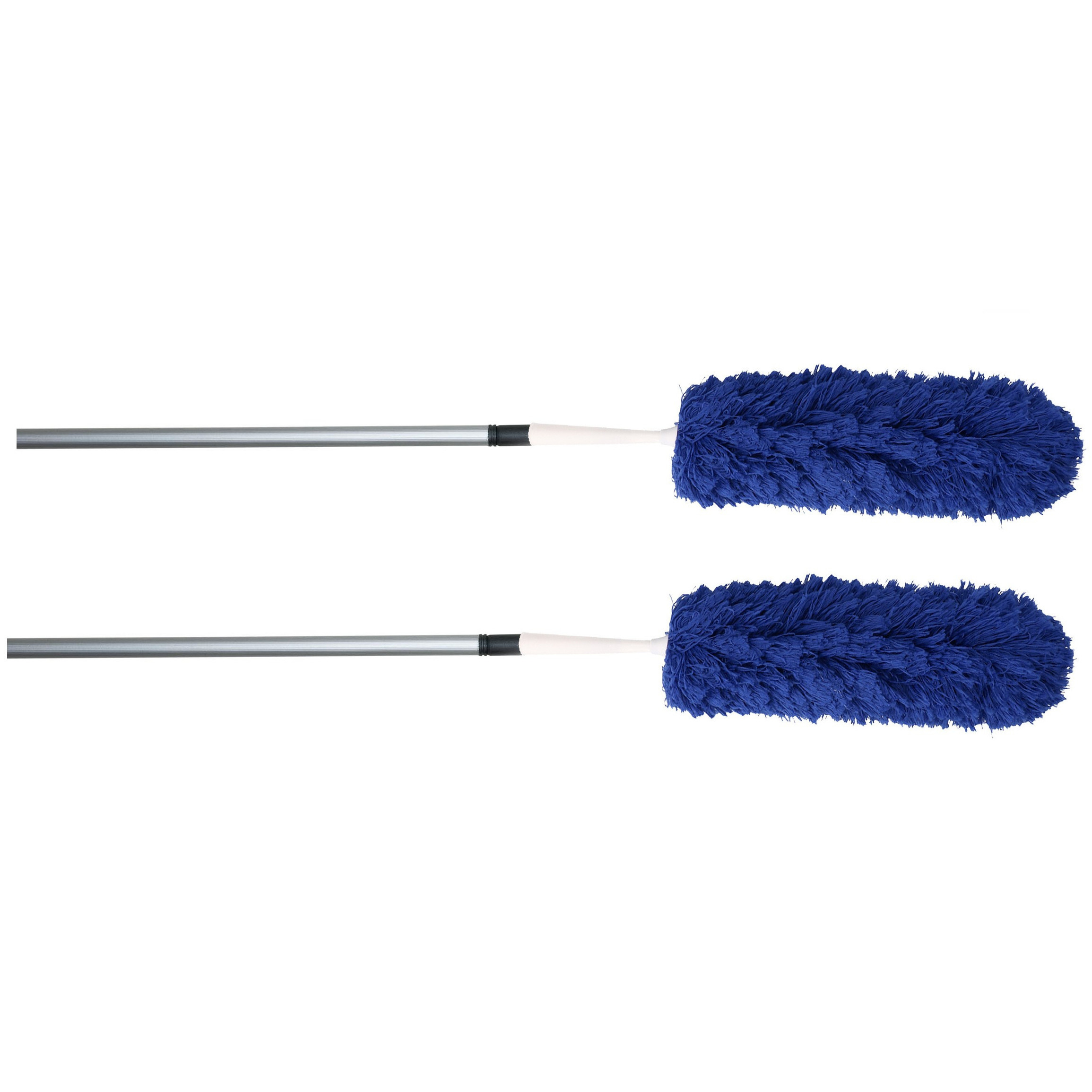 Set van 2x stuks plumeau/duster microvezel met telescoopsteel 75 – 150 cm blauw –