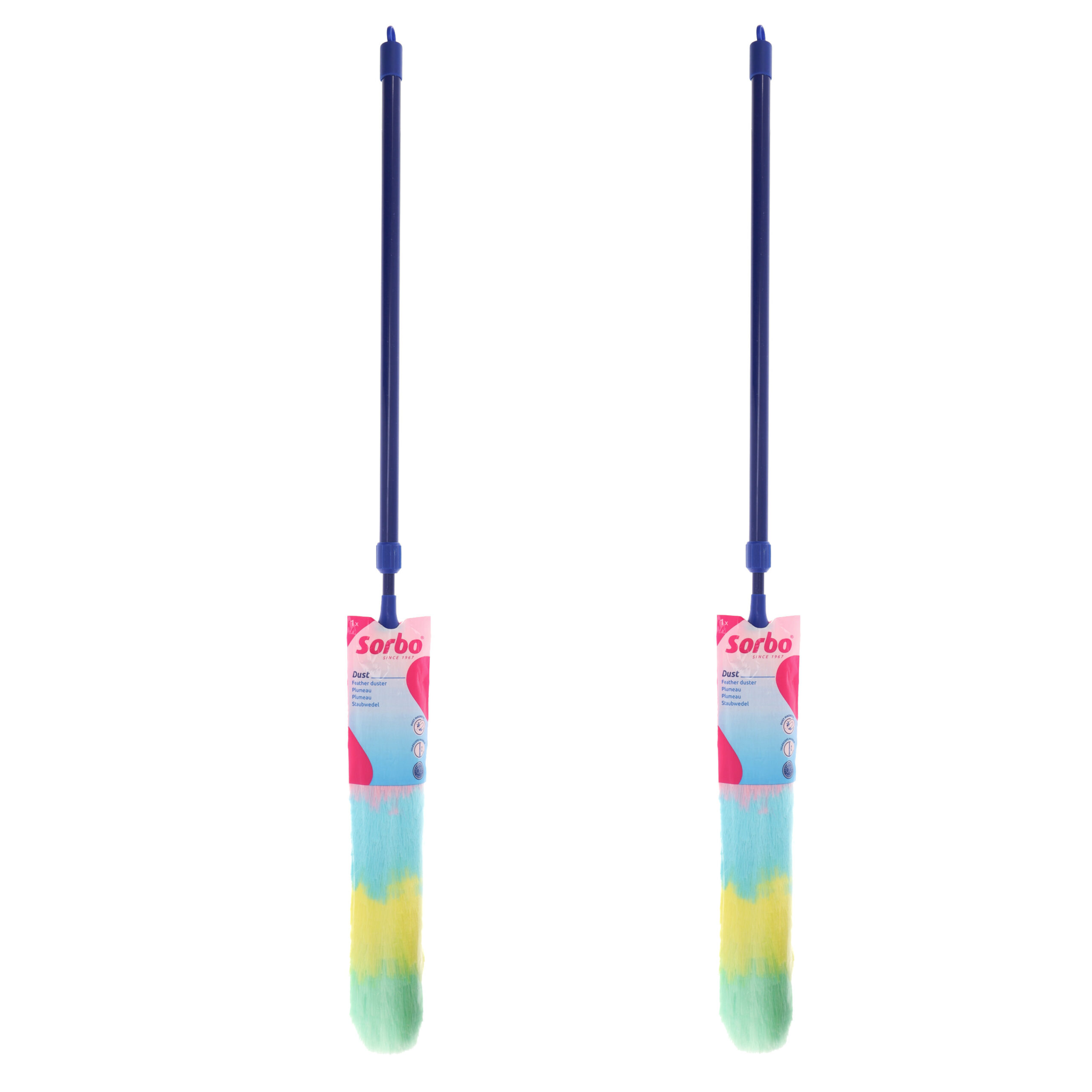 Maak stof afnemen snel, makkelijk ?n leuk met deze kleurrijke Sorbo plumeau! Dankzij de telescoopsteel van 115 cm kom je moeiteloos bij hoge kasten, lampen en lastige hoekjes, zonder trap of krukje. De zachte kunststof vezels trekken stof aan als een magneet en laten geen krasjes achter, ideaal voor elk oppervlak in huis, bijvoorbeeld lastige plekken zoals tussen/achter de verwarming.