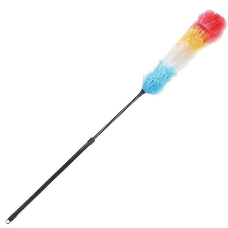 Telescopische Plumeau – telescopisch – gekleurd – tot 120 cm – uitschuifbare duster. Deze kleurrijke telescopische plumeau maakt het afstoffen van je huis of kantoor eenvoudig, zelfs op moeilijk bereikbare plaatsen. De steel is uitschuifbaar van 53 cm tot 90 cm, met een totale lengte van 120 cm inclusief de plumeau. Perfect voor het reinigen van hoge oppervlakken, zoals plafonds, lampen en boekenplanken.